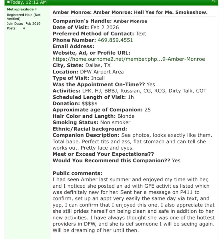 gfe msog lk daty bbj cob 69 greek โdfk cim cob rough play bbfs rimming fingering hr500 minimum no qv or hh FREE OF @ambermonroe100 IG @ambermonroecompanion Thank you for your interest. I am 25 years old, a Libra, a natural blonde standing 5 foot 6 with a natural 38 DDD bust. Iโm very friendly, empathetic, intimate, and kind. I would say Iโm more of an introvert than an extrovert. I love intimacy and connection, a true GFE. I know how to hold an engaging conversation and give you an experience that you will not forget. Iโm originally from the Midwest, grew up in the country, and moved to Texas to enjoy a bigger city. I enjoy MSOG, kissing, BBJ, a true GFE, and an intimate encounter. Iโm a firm believer that looks fade, but a great personality is magnetic. Iโm looking for clients who value a real, soulful connection over superficiality. If you have a great spirit and a kind heart, youโll have my full attention and genuine attraction